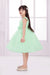 Mini Stitch Fan pleated yoke dress with frilled pattern party frock- Seagreen