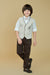 Let your little one steal the spotlight in this adorable 3-piece party wear set. Featuring a soft velvet-textured waistcoat in Baby pink, beautifully detailed with playful embroidery, this outfit brings elegance and fun together. Paired with a crisp white shirt and grey cotton trousers, this set offers a refined yet youthful look perfect for birthdays, festive celebrations, and special occasions. Stylish, comfortable, and charming – it’s an ideal ensemble for your young trendsetter.