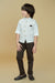 Let your little one steal the spotlight in this adorable 3-piece party wear set. Featuring a soft velvet-textured waistcoat in Baby pink, beautifully detailed with playful embroidery, this outfit brings elegance and fun together. Paired with a crisp white shirt and grey cotton trousers, this set offers a refined yet youthful look perfect for birthdays, festive celebrations, and special occasions. Stylish, comfortable, and charming – it’s an ideal ensemble for your young trendsetter.