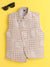 Ministich Jaquard Sleeveless Checks Waistcoat - Beige