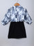Smart and stylish, this kids’ midi dress is designed to give the chic look of a shirt and skirt in one piece. The printed shirt-style bodice with a collar and button-down front is paired with a solid black skirt for a trendy contrast. A cute floral applique adds a touch of charm, making it perfect for casual outings, gatherings, or special occasions. Comfortable yet fashionable, this one-piece is a must-have for your little one’s wardrobe.