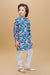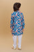 Bring a touch of the tropics to your little one's wardrobe with this vibrant floral printed shirt. Featuring a lively pattern of blooming pink flowers and lush green leaves on a Peacock blue background, this collared shirt is perfect for beach trips, holidays, or any sunny day out. The lightweight fabric ensures comfort and breathability, keeping them cool while they play.Paired with white cotton pants that offer comfort and ease of movement, this outfit is both stylish and functional—ideal for weddings, festivals, or family celebrations.