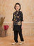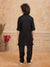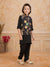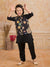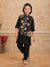 Dress your little one in this elegant ethnic ensemble featuring black floral embriodered Nehru jacket paired with a classic black kurta and payjama. The jacket is adorned with vibrant floral motifs and pearl button detailing, adding a festive charm to the outfit. Made from soft, breathable fabric, this set ensures all-day comfort while keeping the look traditional yet stylish — perfect for weddings, festive celebrations, or family gatherings.