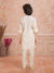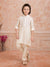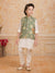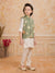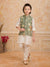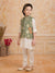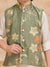 Dress your little one in this elegant ethnic ensemble featuring olivegreen floral embriodered Nehru jacket paired with a classic Offwhite kurta and payjama. The jacket is adorned with vibrant floral motifs and pearl button detailing, adding a festive charm to the outfit. Made from soft, breathable fabric, this set ensures all-day comfort while keeping the look traditional yet stylish — perfect for weddings, festive celebrations, or family gatherings.