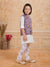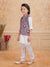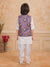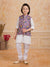Make your little one stand out in this charming 3-piece ethnic set featuring a bright blue printed printed Nehru jacket paired with a offwhite kurta and churidar. The jacket showcases elegant multicolour floral patterns with pearl button detailing, adding a festive flair to the outfit. Crafted from soft and breathable fabric, this ensemble ensures comfort and style, perfect for weddings, festive occasions, and family gatherings.