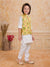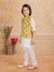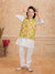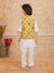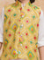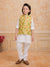 Ministitch Cotton silk Woven full sleeves Printed Kurta Pajama Nehru Jacket set-Yellow