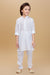 Make your little one stand out in this charming 3-piece ethnic set featuring a bright blue printed printed Nehru jacket paired with a offwhite kurta and churidar. The jacket showcases elegant multicolour floral patterns with pearl button detailing, adding a festive flair to the outfit. Crafted from soft and breathable fabric, this ensemble ensures comfort and style, perfect for weddings, festive occasions, and family gatherings.