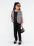 Brighten up your little one’s wardrobe with this charming co-ord set featuring a soft, rich muslin baby pink palazzo adorned with bold black leaf prints. Paired effortlessly with a solid black half-sleeve crop top, this ensemble offers both comfort and contemporary flair. The breathable muslin fabric ensures ease of movement, making it ideal for casual outings, festive occasions, or stylish everyday wear. A perfect mix of playful and polished!