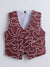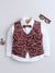 Make your little one stand out in style with this elegant formal outfit, featuring a crisp white shirt paired with a rich maroon waistcoat. The waistcoat is designed with a unique textured pattern in contrasting tones, adding a modern and stylish twist to a classic look. Finished with a matching bow tie and front button closure, this ensemble brings a perfect blend of sophistication and charm. Ideal for weddings, festive celebrations, and special occasions, it is crafted from soft, breathable fabric to ensure all-day comfort while keeping your child looking sharp and fashionable.