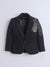 Give your little one a sharp, standout look with this elegant kids’ blazer. Crafted from high-quality fabric in a soft beige tone, this blazer features a classic notch-lapel design and a single-button closure for a clean, tailored finish.The highlight of this piece is the unique foil-printed artwork on one shoulder, adding a modern, artistic touch that sets it apart from ordinary formalwear. Perfect for parties, weddings, festive occasions, or stylish photoshoots, this blazer combines comfort with eye-catching style.