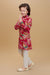 Add a splash of color to your child's festive wardrobe with this beautifully crafted ethnic kurta set. The set features a vibrant red kurta adorned with traditional multicolor floral prints, bringing out a rich and joyful cultural vibe. The kurta is paired with soft, breathable cream cotton pants designed with a comfortable elastic waistband. Perfect for weddings, family gatherings, festivals, and cultural events, this ensemble ensures your child stays stylish and comfortable all day long.