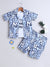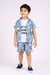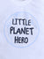 Keep it cool and casual with this modern Blue alphabet-print co-ord set. Made from soft cotton, this 3-piece outfit includes a short-sleeved button-down shirt and matching shorts with scattered typography in blue, white, and black tones. The set is paired with a white T-shirt that reads "Little Planet Hero", adding a cute and heroic twist to your boy’s wardrobe. Perfect for everyday wear, playdates, or casual outings.