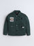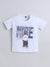 This trendy kids outfit includes a denim jacket designed with a modern twist. The jacket features black button closures, stylish flap pockets, and bold black printed text details on the chest and sleeves for a cool, contemporary feel. It is layered over a white printed T-shirt typography , adding a fresh and dynamic contrast. This outfit is perfect for stylish casual outings and gives off a playful yet polished vibe.