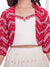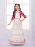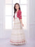 Dress your little one in this stunning festive lehenga set crafted from soft and flowy georgette fabric, perfect for special occasions. This stylish three-piece outfit features: A white crop top with subtle embellishments at the neckline for a graceful finish, a matching white georgette lehenga skirt adorned with zigzag sequin embroidery in gold, pink, and red, adding a playful yet elegant charm, a vibrant red sequin embroidered jacket with three-quarter sleeves, bringing a bold pop of color and festive flair to the ensemble. This outfit combines traditional design with modern style, making it ideal for weddings, family celebrations, festivals, or party wear. Lightweight and breathable, it ensures both comfort and style for your child all day long.