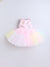 The Ministitch Hand-Made Beaded Candy and Ice Cream Applique Tulle Party Dress for Baby Girls in baby pink is a cute outfit. It has fun candy and ice cream designs made with beads, giving the dress a sweet and special look. The soft tulle fabric adds a light, fluffy feel, back zip closure is there for the perfect fitting, specially designed for occasions like birthdays, parties, or photoshoots.