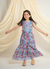 Celebrate Rakhi in style with this vibrant and playful 2-piece ethnic set, crafted from soft and breathable muslin cotton for all-day comfort. The outfit features a high-neck solid pink top adorned with delicate dangling star embroidery and tassels with extra sleeve fabric inside, adding festive sparkle to the look. It is paired with a stylish asymmetrical box-pleated palazzo in a striking geometric print, combining traditional flair with modern fashion. Designed for movement, comfort, and festive charm—perfect for little girls to twirl through the celebrations!