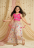 Celebrate Rakhi in style with this vibrant and playful 2-piece ethnic set, crafted from soft and breathable muslin cotton for all-day comfort. The outfit features a high-neck solid pink top adorned with delicate dangling star embroidery and tassels with extra sleeve fabric inside, adding festive sparkle to the look. It is paired with a stylish asymmetrical box-pleated palazzo in a striking geometric print, combining traditional flair with modern fashion. Designed for movement, comfort, and festive charm—perfect for little girls to twirl through the celebrations!