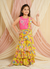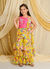 Ministitch Muslin Cotton Woven Sleeveless Digital Printed Shrara With Top Set- Yellow