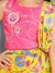 Celebrate Rakhi in style with this vibrant and playful 2-piece ethnic set, crafted from soft and breathable muslin cotton for all-day comfort. The outfit features a high-neck solid pink top adorned with delicate dangling star embroidery and tassels with extra sleeve fabric inside, adding festive sparkle to the look. It is paired with a stylish asymmetrical box-pleated palazzo in a striking geometric print, combining traditional flair with modern fashion. Designed for movement, comfort, and festive charm—perfect for little girls to twirl through the celebrations!