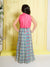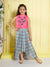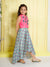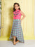 Celebrate Rakhi in style with this vibrant and playful 2-piece ethnic set, crafted from soft and breathable muslin cotton for all-day comfort. The outfit features a high-neck solid pink top adorned with delicate dangling star embroidery and tassels with extra sleeve fabric inside, adding festive sparkle to the look. It is paired with a stylish asymmetrical box-pleated palazzo in a striking geometric print, combining traditional flair with modern fashion. Designed for movement, comfort, and festive charm—perfect for little girls to twirl through the celebrations!