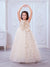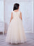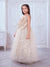 Dress your little one in graceful elegance with this stunning kids net gown, designed to make every occasion special. Crafted from soft, premium net fabric with a comfortable inner lining, this gown features a beautifully flared silhouette that offers a flowy and fairy-tale look.The bodice is adorned with delicate sequin work arranged in elegant patterns, while the highlight is the statement oversized bow at the waist, adding a charming and stylish touch. The asymmetrical design detail enhances the modern appeal, making it perfect for celebrations and special moments.