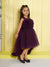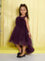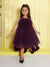 Dress your little one in elegance and charm with this stunning high-low net frock designed especially for special occasions. Made from premium quality soft net fabric, this sleeveless dress features a rich deep plum hue that exudes sophistication.The yoke is adorned with intricate gathers, adding beautiful volume and texture to the bodice. The frock flows into a flared skirt with a back tail cut, creating a graceful high-low silhouette that adds a fairy-tale touch to the outfit. Light and airy, this dress allows ease of movement while making a stylish statement.Perfect for birthdays, weddings, and festive events, this frock pairs beautifully with ballet flats or embellished shoes. Let your little girl shine with confidence in this timeless and elegant ensemble.