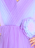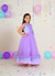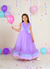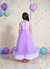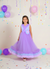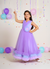 Let your little one dazzle in this elegant lilac net gown designed for charm and comfort. The sleeveless bodice features soft multicolour pleats in pastel tones that create a subtle V-neck silhouette. Adding to its whimsical appeal, the gown is finished with layered frills at the hem in delicate shades of lavender, pink, and blue. A matching floral applique at the waist completes the look with a touch of playful elegance. Perfect for birthdays, festive occasions, and photo shoots.