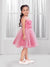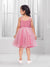 Ministitch Net Woven Sleeveless Pleated Body Party Frock - Pink