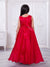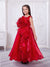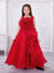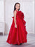 Make your little one shine at every celebration with this stunning red organza gown. Designed to impress, this elegant partywear gown features premium-quality organza fabric that gives a rich, flowy look with a soft and comfortable feel. The highlight of the gown is the beautiful 3D floral applique with layered ruffle detailing on the bodice and cascading down the skirt, finished with delicate contrast edging for a classy touch. The sleeveless design and flared silhouette ensure ease of movement while maintaining a graceful appearance. Perfect for birthdays, weddings, festive occasions, and special events, this gown blends charm, comfort, and style effortlessly.