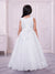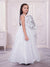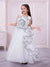 Make your little one shine at every celebration with this stunning white organza gown. Designed to impress, this elegant partywear gown features premium-quality organza fabric that gives a rich, flowy look with a soft and comfortable feel. The highlight of the gown is the beautiful 3D floral applique with layered ruffle detailing on the bodice and cascading down the skirt, finished with delicate contrast edging for a classy touch. The sleeveless design and flared silhouette ensure ease of movement while maintaining a graceful appearance. Perfect for birthdays, weddings, festive occasions, and special events, this gown blends charm, comfort, and style effortlessly.