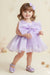 Let your little one feel like a princess in this dreamy peach frock from Mini Stitch. Crafted from light and layered organza fabric, this dress features a full, petal-style skirt and a simple, elegant bodice. The entire look is dominated by a stunning, oversized satin bow on the chest, complete with a sparkling rhinestone accent at the center. This chic frock is perfect for first birthdays, cake smash photo sessions, or any event.
