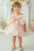 Let your little one feel like a princess in this dreamy Lilac frock from Mini Stitch. Crafted from light and layered organza fabric, this dress features a full, petal-style skirt and a simple, elegant bodice. The entire look is dominated by a stunning, oversized satin bow on the chest, complete with a sparkling rhinestone accent at the center. This chic frock is perfect for first birthdays, cake smash photo sessions, or any event.