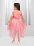Ministitch Organza Woven Sleeveless With Tailcut Party Frock- Peach