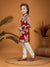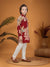 Make your child stand out in this uniquely designed ethnic kurta set, perfect for festive occasions and traditional gatherings. The kurta features a bold multicolor panel design in deep maroon, and red shades, beautifully adorned with oversized floral prints for a vibrant and eye-catching look. Styled with a band collar and front buttons, the kurta brings together elegance and tradition.Paired with cream cotton pants that offer comfort and ease of movement, this outfit is both stylish and functional—ideal for weddings, festivals, or family celebrations.