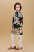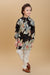 Make your child stand out in this uniquely designed ethnic kurta set, perfect for festive occasions and traditional gatherings. The kurta features a bold multicolor panel design in deep black, and grey shades, beautifully adorned with oversized floral prints for a vibrant and eye-catching look. Styled with a band collar and front buttons, the kurta brings together elegance and tradition.Paired with cream cotton pants that offer comfort and ease of movement, this outfit is both stylish and functional—ideal for weddings, festivals, or family celebrations.