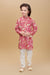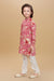 "Let your little one shine in this elegant floral kurta set, perfect for festive celebrations and special occasions. The kurta features a soft rose-pink base with beautiful oversized floral prints in cream and olive green tones, finished with classic buttons and a band collar. It's paired with comfortable cream cotton pants that offer a neat and polished look.