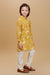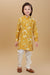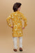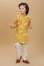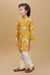 "Let your little one shine in this elegant floral kurta set, perfect for festive celebrations and special occasions. The kurta features a soft yellow base with beautiful oversized floral prints in cream and grey tones, finished with classic buttons and a band collar. It's paired with comfortable cream cotton pants that offer a neat and polished look.