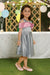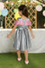 Elevate your little one's party look with this elegant olive green frock crafted from premium imported satin. The design features graceful box pleats that create a full, flared silhouette, perfect for twirling at any festive occasion. A striking blush pink shoulder band with a 3D floral applique adds a modern twist and touch of charm to the look. Ideal for birthdays, weddings, or celebrations, this frock blends sophistication and playfulness in a beautifully tailored piece.