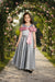 Let your little girl shine at every celebration with this elegant olive-green satin gown. The smooth, flowy silhouette features a beautifully pleated flare, while a blush-pink satin band drapes gracefully across the shoulders. Handcrafted floral appliqué detailing and an extended sash add a touch of charm. Perfect for weddings, birthdays, and festive events.