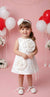 Dress your little one in pure elegance with this charming white frock from MiniStitch. Crafted from smooth, structured scuba fabric, this A-line dress maintains a beautiful, modest silhouette that's comfortable for any celebration. The design is highlighted by two striking 3D floral appliques on the front bodice and skirt, adding texture and sophistication. A thin, delicate sash ties sweetly at the side. Perfect for a First Holy Communion, Baptism, Flower Girl duty, or a formal birthday party.