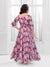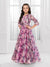 Dress your little one in timeless charm with this peach Tissue gown featuring a delicate all-over floral print. The gown is designed with puffed 3/4th sleeves for a graceful silhouette and flowy elegance. This has pleated yoke and is adorned with an embossed floral appliqué, adding a bold and beautiful accent. Ideal for parties, weddings, and festive occasions, this gown blends comfort with fairy-tale flair.