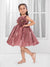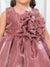 This exquisite Brown party frock is designed to make your little girl shine at any special occasion, from birthday parties to holiday gatherings. Crafted from a shimmering tissue , high-quality fabric, the sleeveless design offers comfort and freedom for movement, while the fit-and-flare silhouette creates a voluminous, twirl-worthy skirt. The standout feature is the luxurious, oversized 3D floral applique centered on the bodice, detailed with subtle glittering accents that elevate the dress to a truly festive and eye-catching piece.