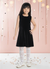 Ministitch Velvet Woven half sleeves Embellished Midi Dress- Black