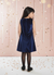 Ministitch Velvet Woven half sleeves Embellished Midi Dress- Blue