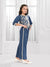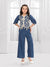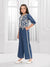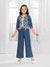 Make festive dressing effortlessly stylish with this elegant blue coord set for girls. The short jacket-style top is beautifully adorned with intricate off-white thread embroidery in floral motifs, finished with delicate tassel detailing along the hem for a handcrafted look. Paired with straight-fit pants featuring contrast lace detailing on the sides, this outfit offers the perfect balance of tradition and comfort.