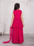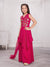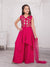 Let your little one shine in this elegant and festive palazzo set, designed to blend comfort with traditional charm. The sleeveless V-neck top features delicate floral embroidery with subtle shimmer, adding a graceful festive appeal. Paired with flowy palazzo pants, the outfit is enhanced with an asymmetrical layered hem for a stylish modern touch. A soft matching net dupatta completes the look beautifully.