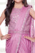 Make your little one stand out in this stunning ready-to-wear saree for girls, designed with both elegance and ease in mind. Crafted from soft and stretchable Lycra shimmer fabric, this pre-stitched saree ensures a perfect drape and effortless wearability—ideal for festive occasions, weddings, or parties.The ensemble features a sleeveless blouse embellished with delicate sequin embroidery, adding a touch of sparkle and charm. A matching embroidered belt completes the look, providing both style and function by securing the saree drape in place.